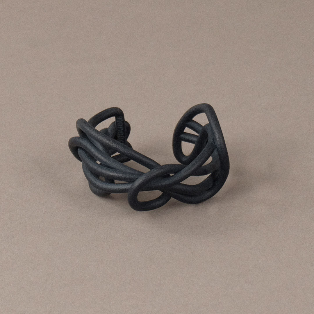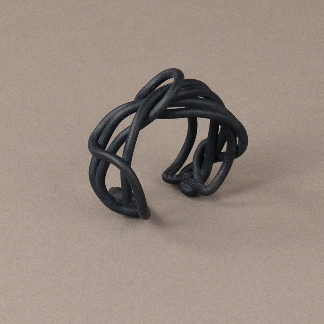 Bracelet made with 3D printing. Technology merges with elegance. Wear an original ring between your fingers thanks to the combination of innovative design and unusual materials. 3D printing allows for precision in details, the choice of materials ensures lightness and comfort without ever giving up a unique style. The perfect gift for those who love contemporary jewelry, with a strong experimental character.
