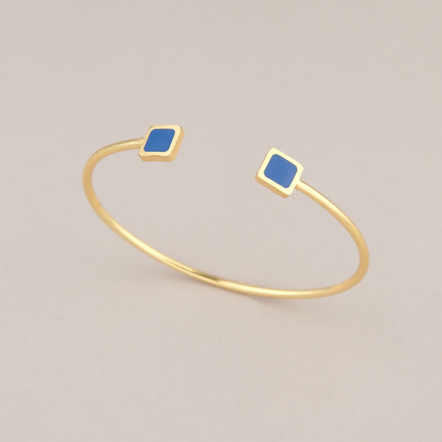Thin and elegant bracelet handmade with gold-plated bronze thread and small decorative elements in blue cold enamel, in the shape of squares. The perfect fusion between contemporary elegance and traditional craftsmanship. Let yourself be fascinated by the elegant design and refined details of a jewel that will be the perfect complement to any look. It will perfectly match your colorful dress, or will be the touch of style that a simpler outfit needs. The perfect gift for yourself or to surprise a special person.
