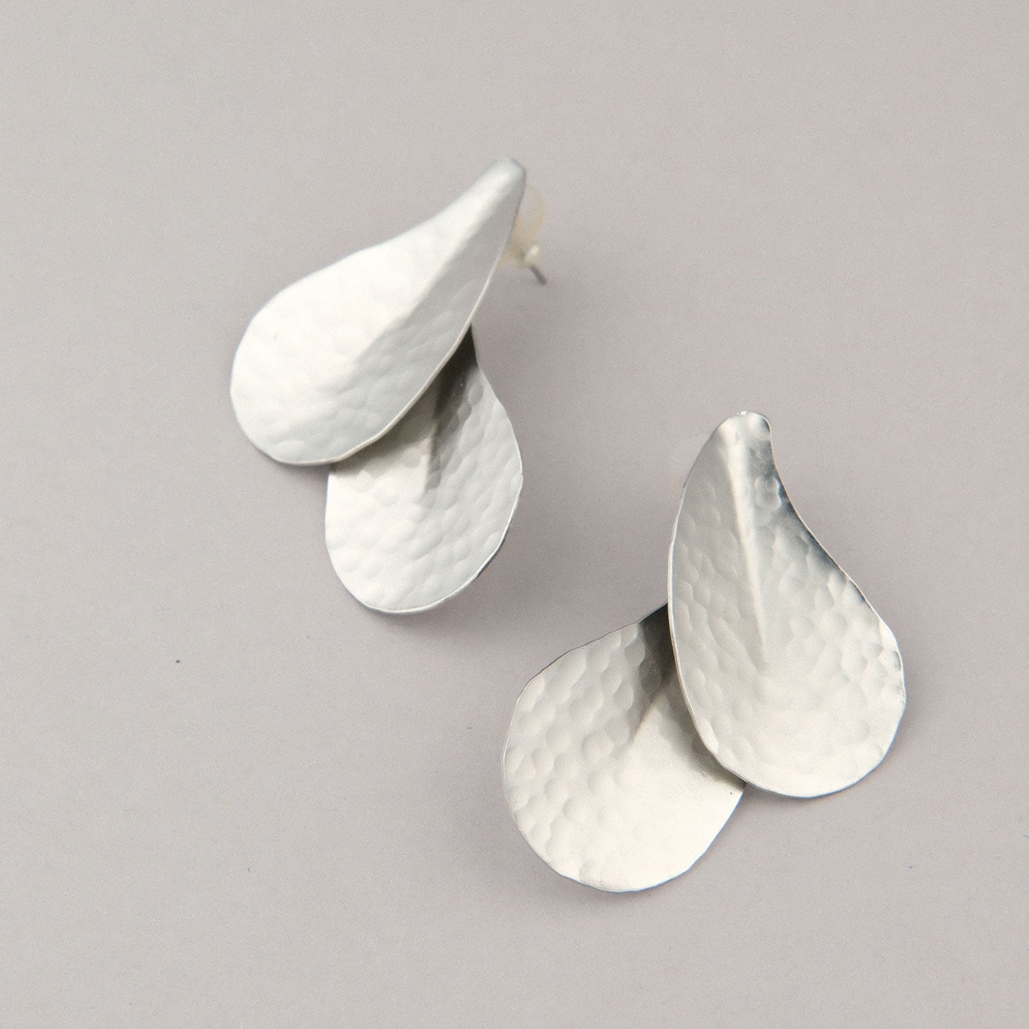 Orecchini pendenti in ottone placcato argento, nati dalla lavorazione di una lastra di metallo che, piega dopo piega, prende forme sempre diverse. Un accessorio pensato per accompagnare ogni donna, ogni giorno, in ogni versione di sé.