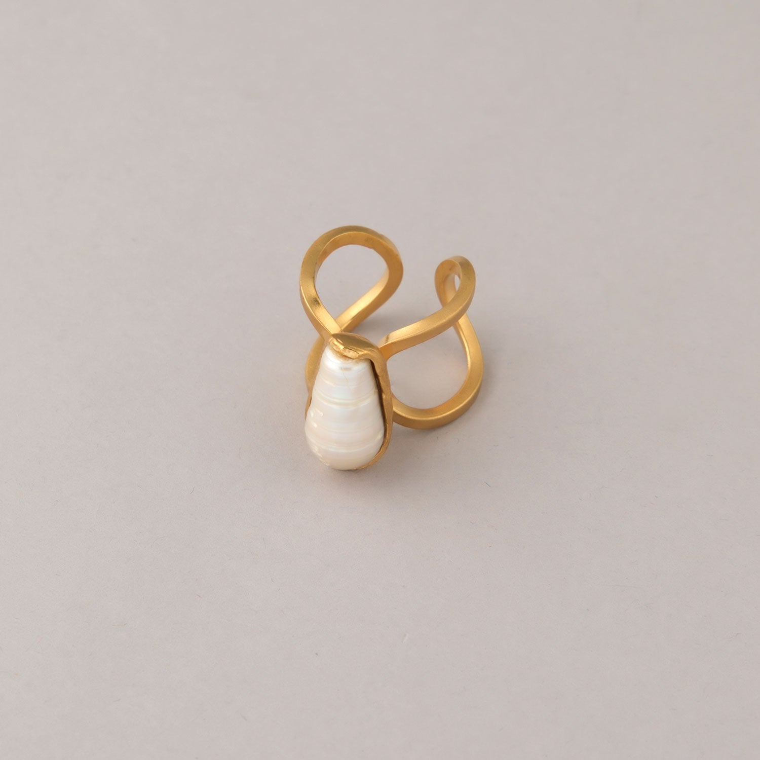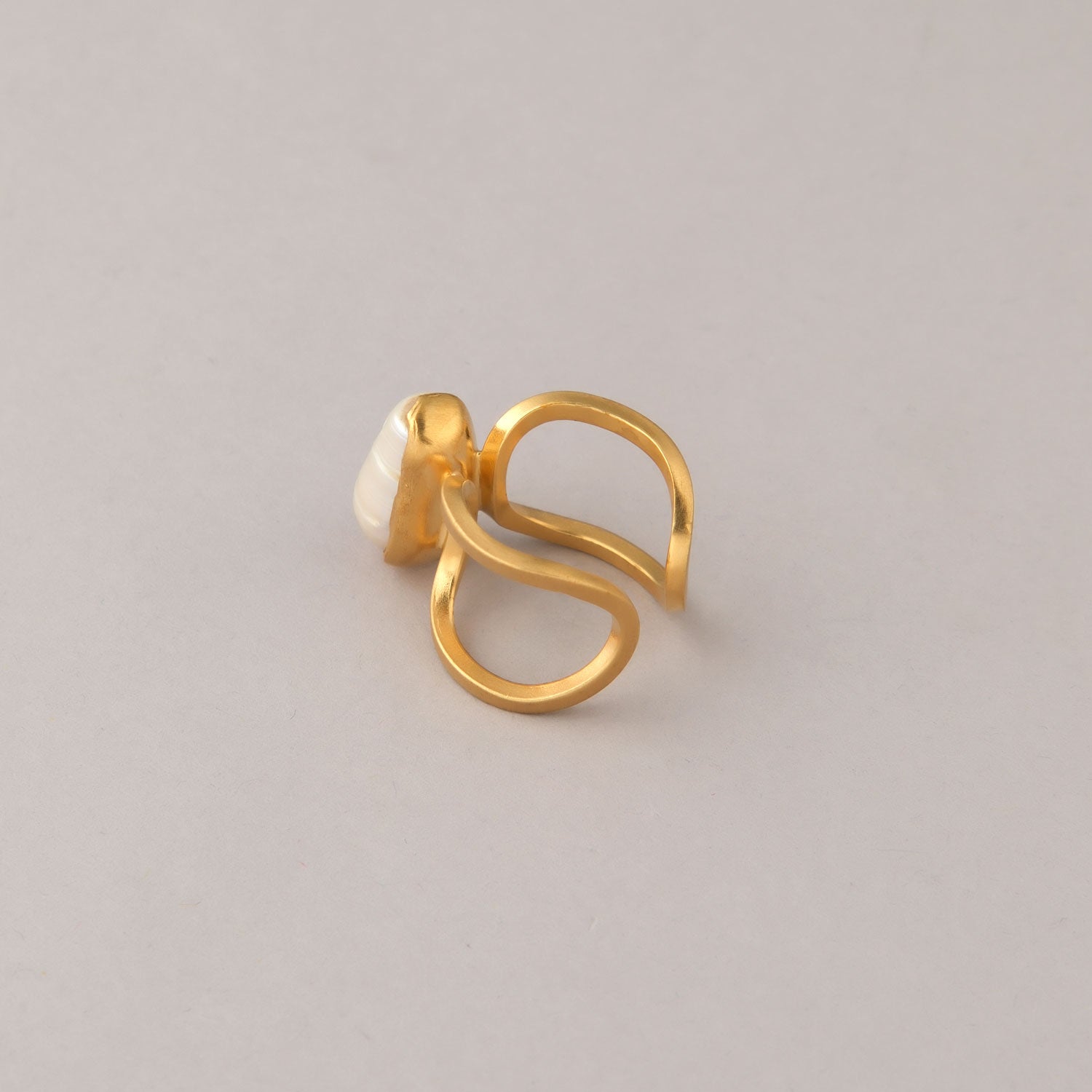 Anello a fascia in ottone placcato oro 24K con finitura opaca, inserto con perla barocca. Un accessorio per donare ancora più eleganza e raffinatezza ai tuoi gesti.
