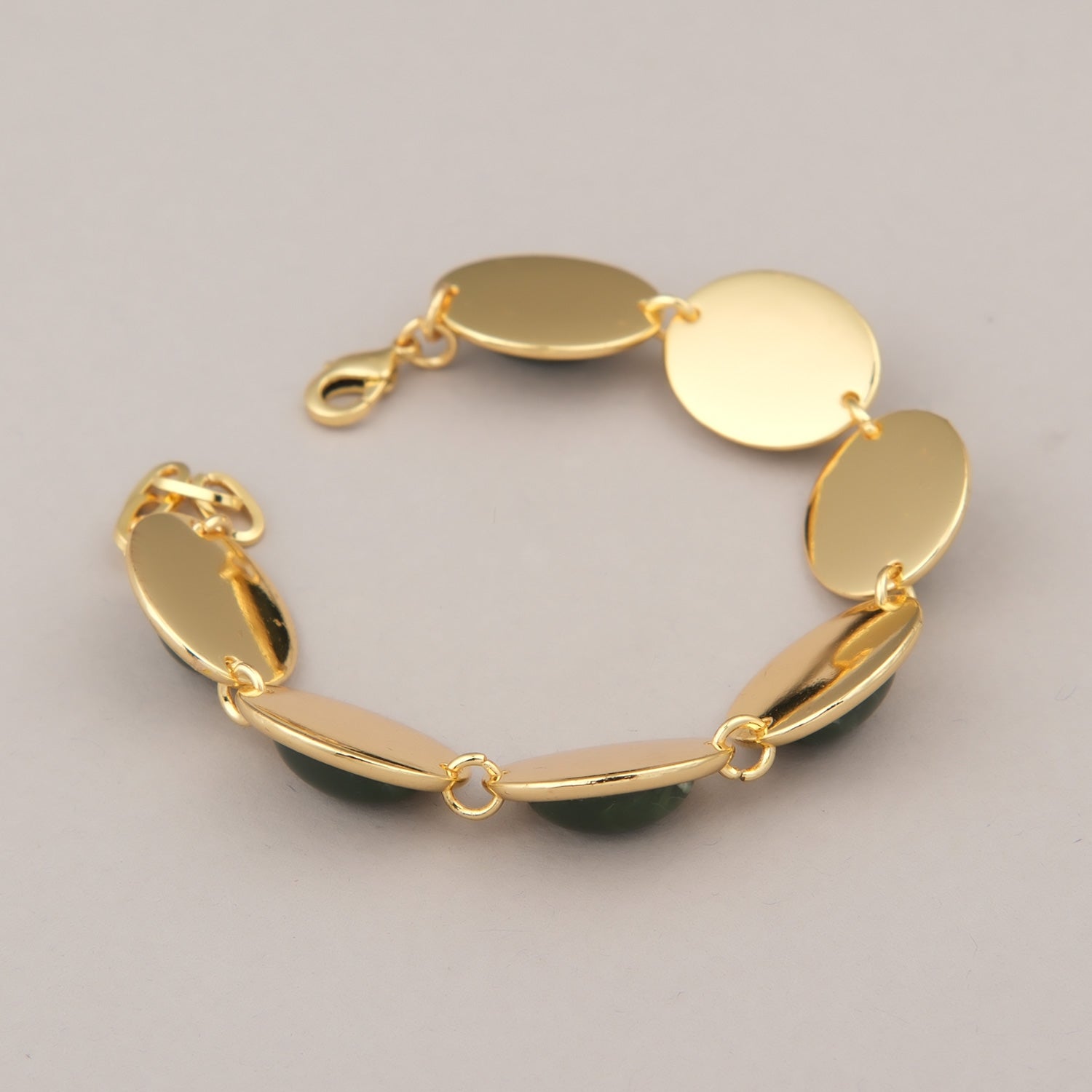 Bracciale dorato con elementi in resina di colore verde scuro. Un gioiello colorato e versatile per divertirti a creare abbinamenti perfetti con i tuoi outfit.