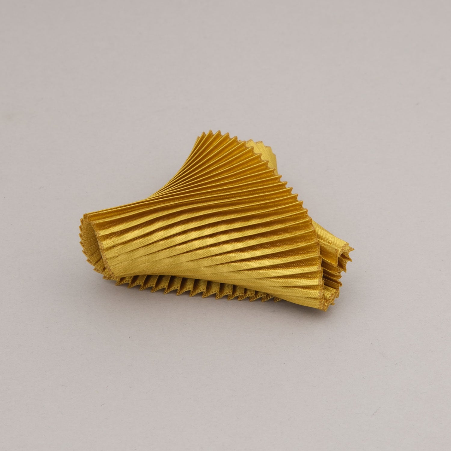 Polsino realizzato a mano in seta plissettata color oro giallo. Senza chiusura, puoi infilarlo comodamente dalla mano, posizionando il risvolto frontalmente o lateralmente, in base alle esigenze del tuo abbigliamento. E' l’accessorio alla moda perfetto come regalo alla tua persona speciale o per donare un tocco vivace ed originale ai tuoi outfit di giorno come di sera.