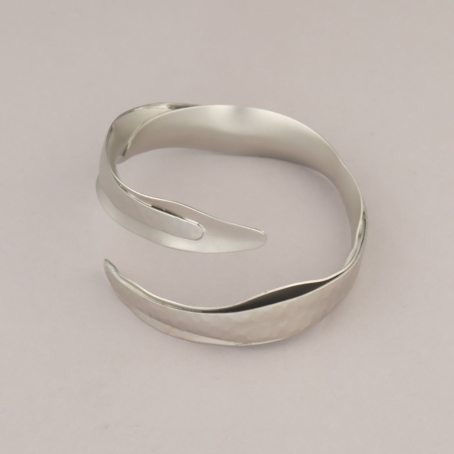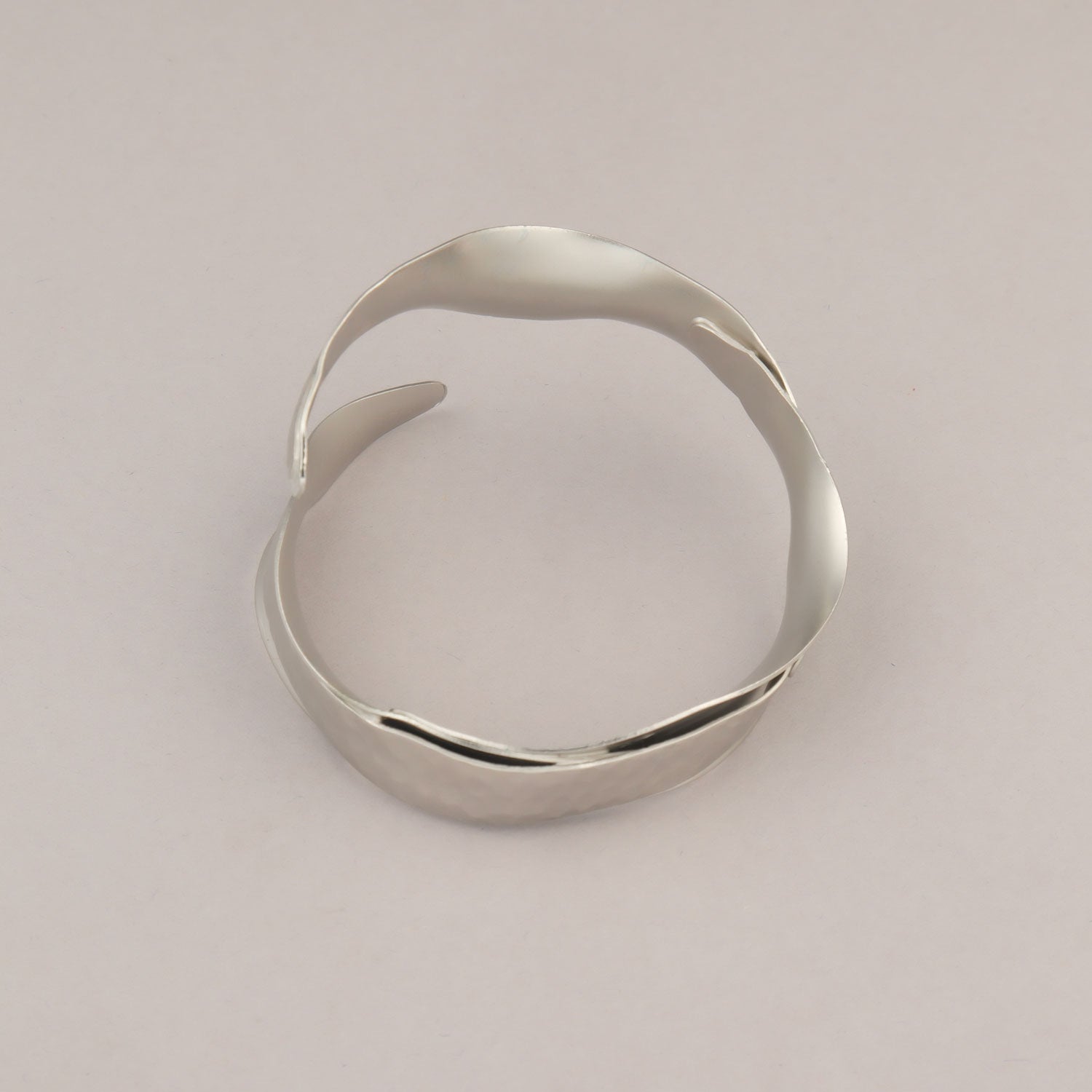 Bracciale in ottone placcato rodio, nato dalla lavorazione di una lastra di metallo che, piega dopo piega, prende forme sempre diverse. Un accessorio pensato per accompagnare ogni donna, ogni giorno, in ogni versione di sé.