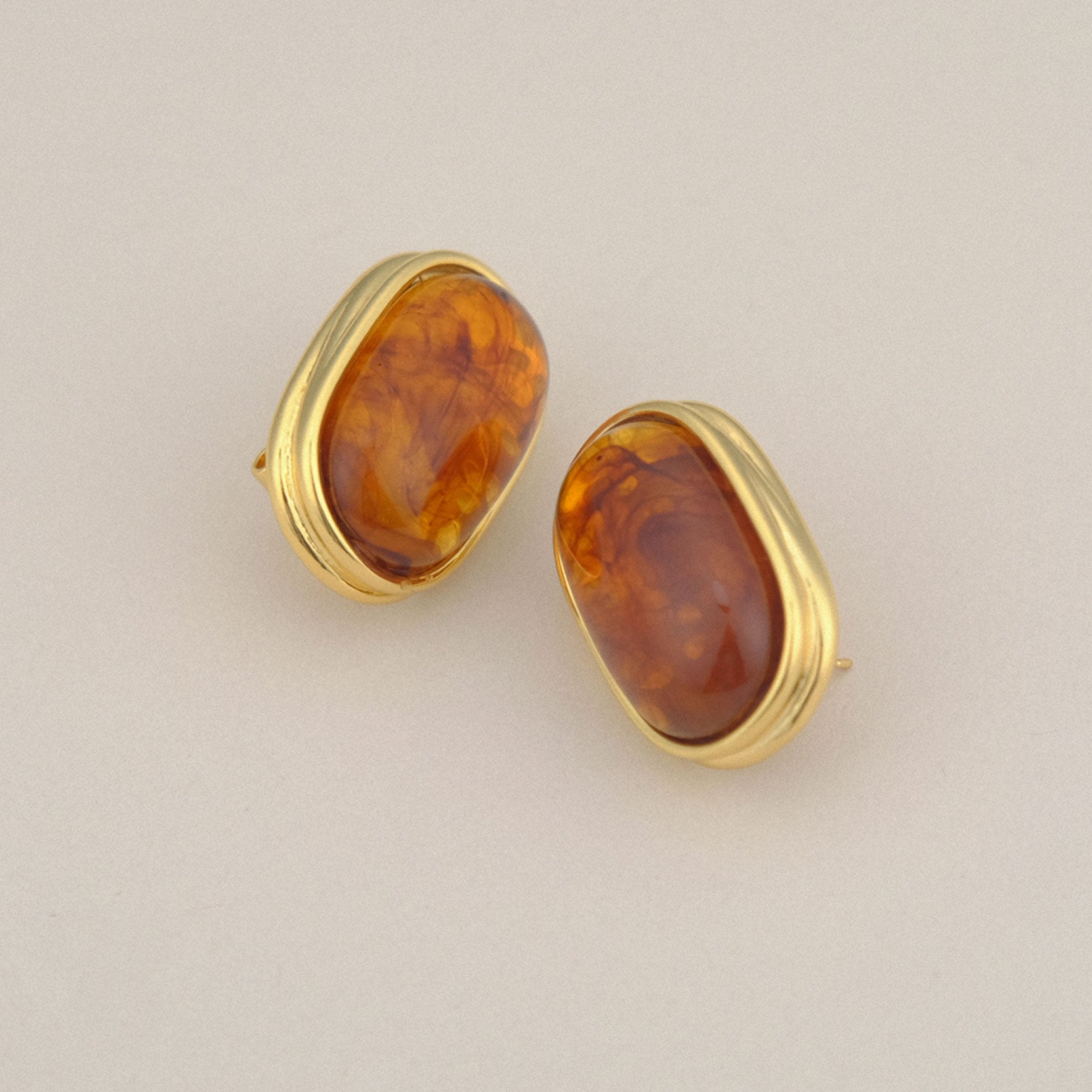 Orecchini a lobo in ottone placcato oro ed inserto con resina cabochon di colore ambra. Un gioiello colorato e versatile per divertirti a creare abbinamenti perfetti con i tuoi outfit.