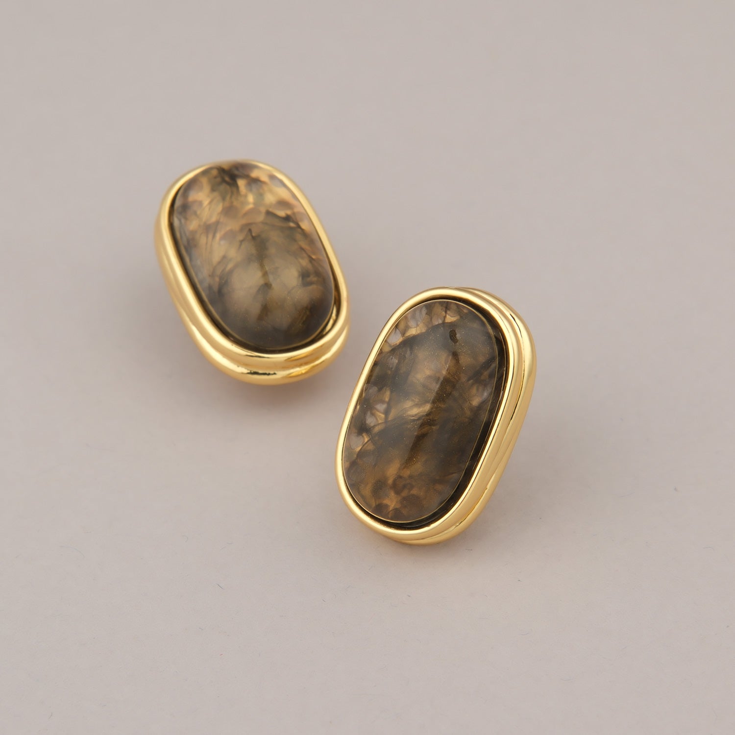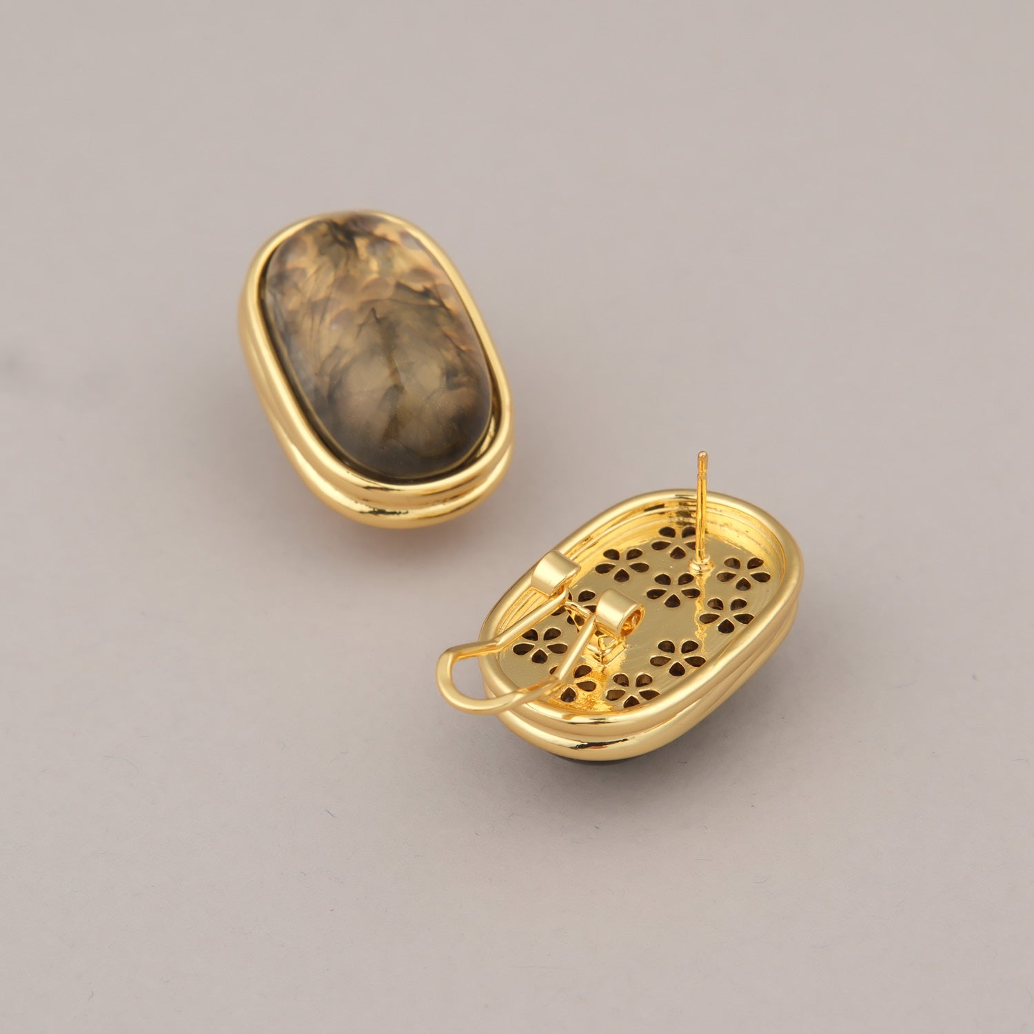 - Orecchini a lobo in ottone placcato oro ed inserto con resina cabochon di colore grigio antracite. Un gioiello colorato e versatile per divertirti a creare abbinamenti perfetti con i tuoi outfit.