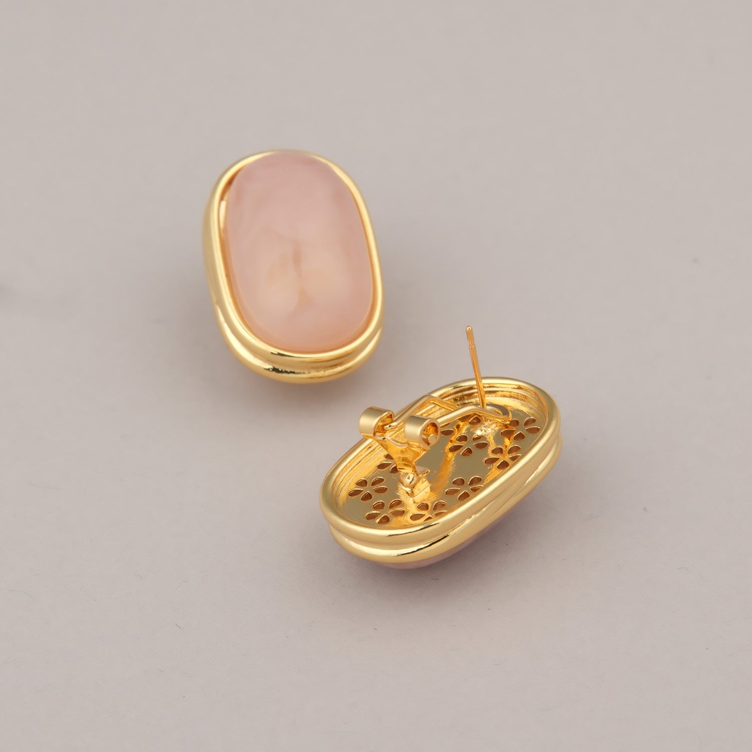 Orecchini a lobo in ottone placcato oro ed inserto con resina cabochon di colore rosa. Un gioiello colorato e versatile per divertirti a creare abbinamenti perfetti con i tuoi outfit.