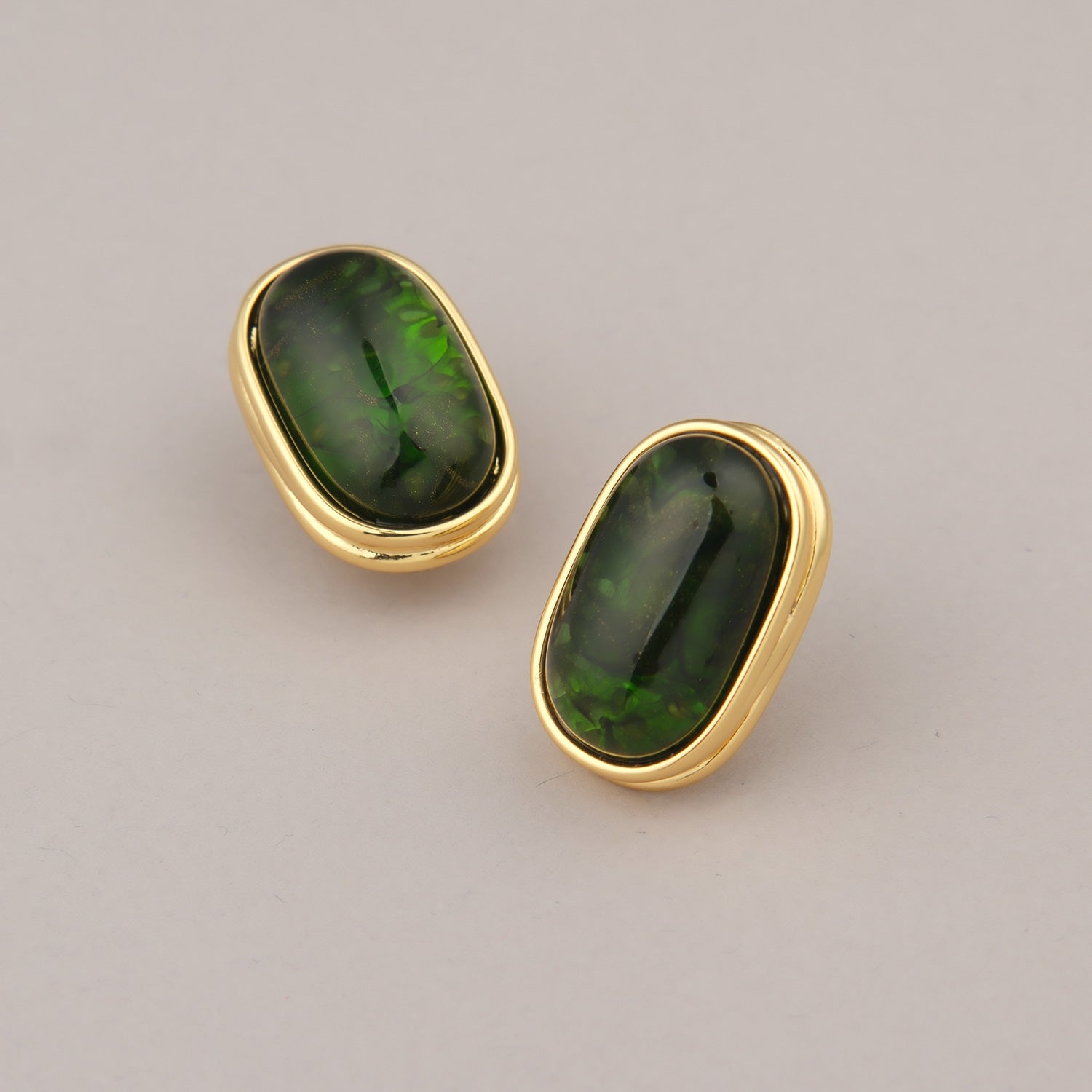Orecchini a lobo in ottone placcato oro ed inserto con resina cabochon di colore verde. Un gioiello colorato e versatile per divertirti a creare abbinamenti perfetti con i tuoi outfit.