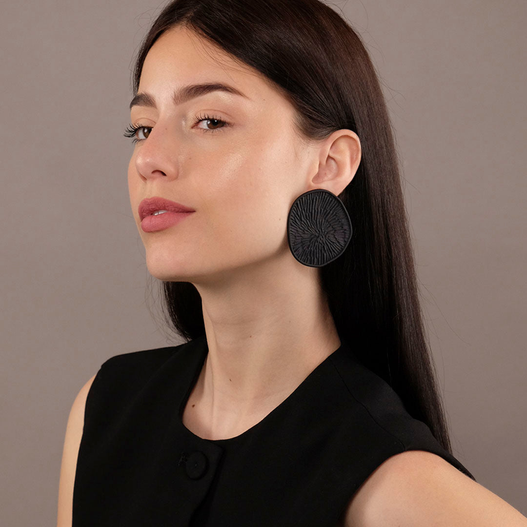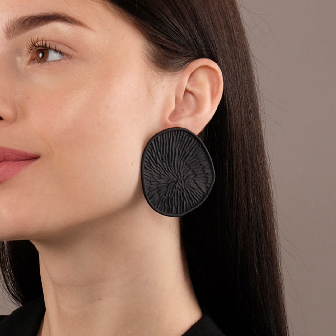 Orecchini a lobo realizzati in nylon con stampa 3D.