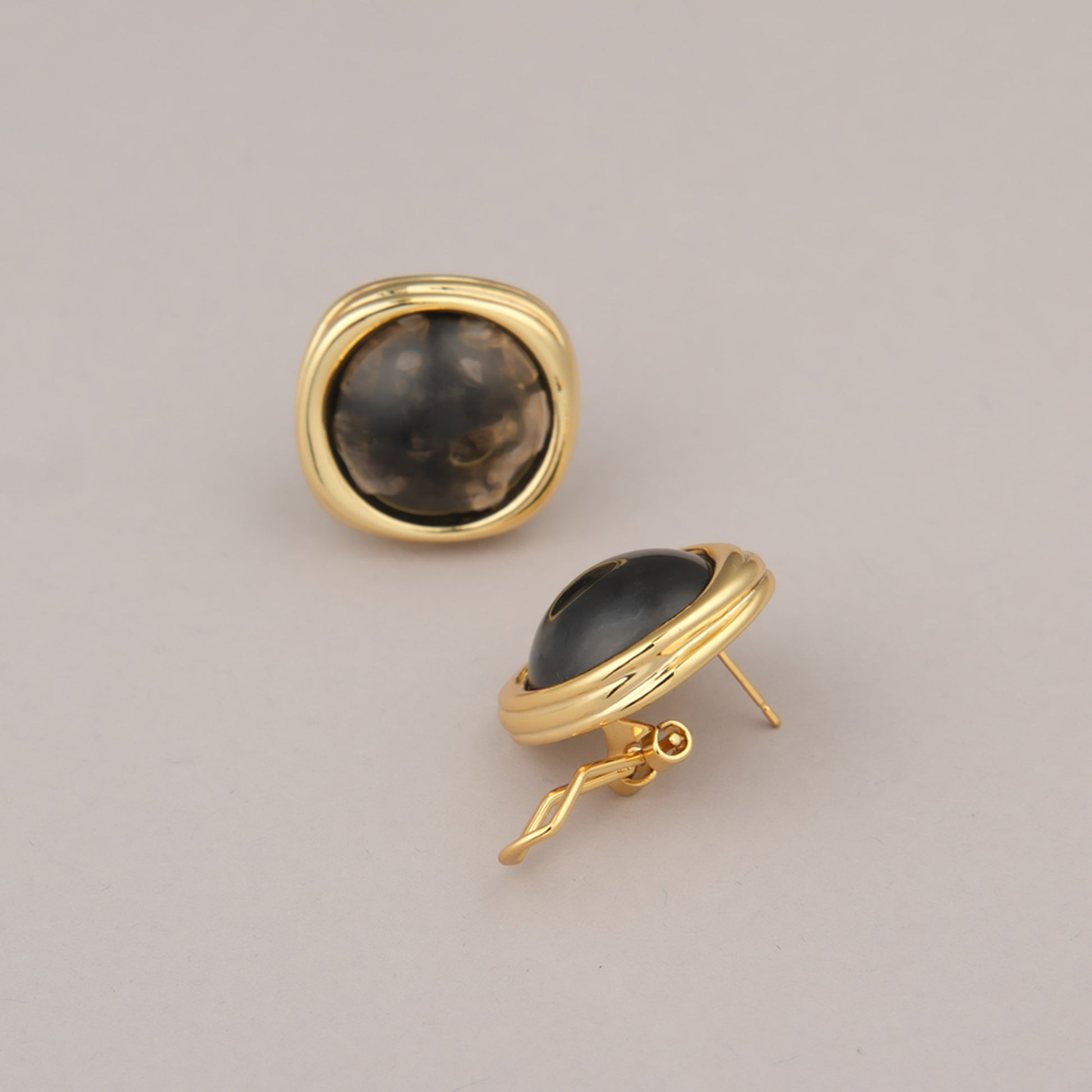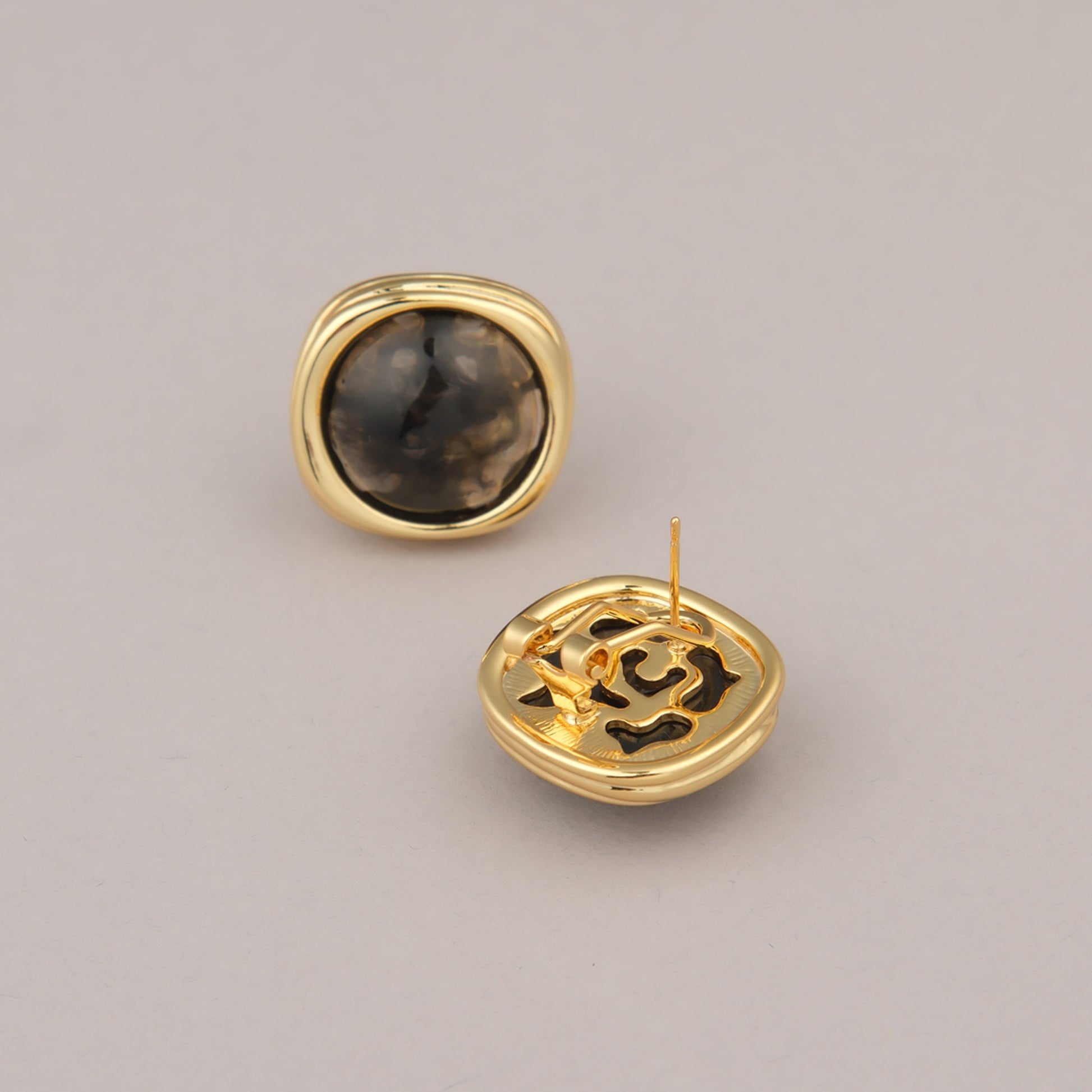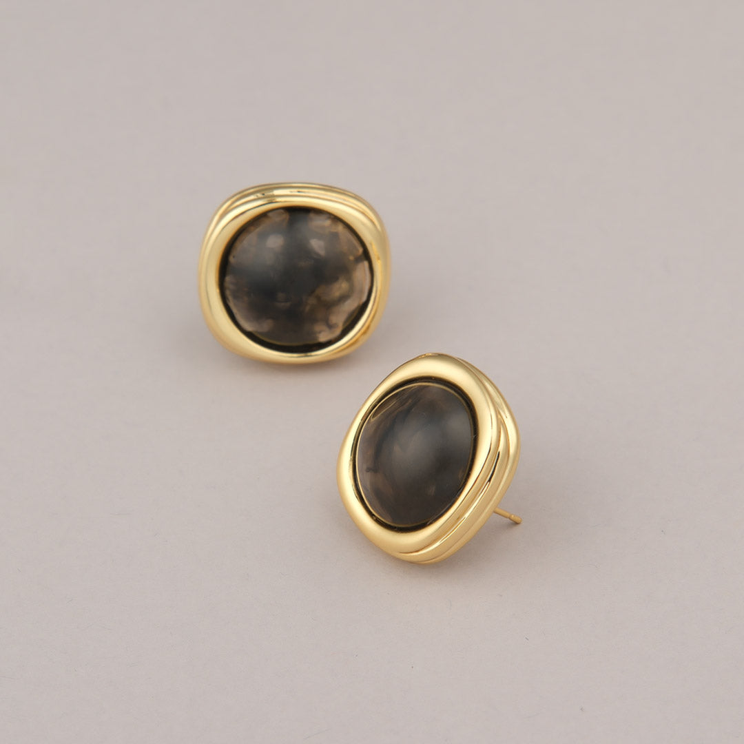 Orecchini a lobo in ottone placcato oro ed inserto con resina cabochon di colore grigio antracite. Un gioiello colorato e versatile per divertirti a creare abbinamenti perfetti con i tuoi outfit.