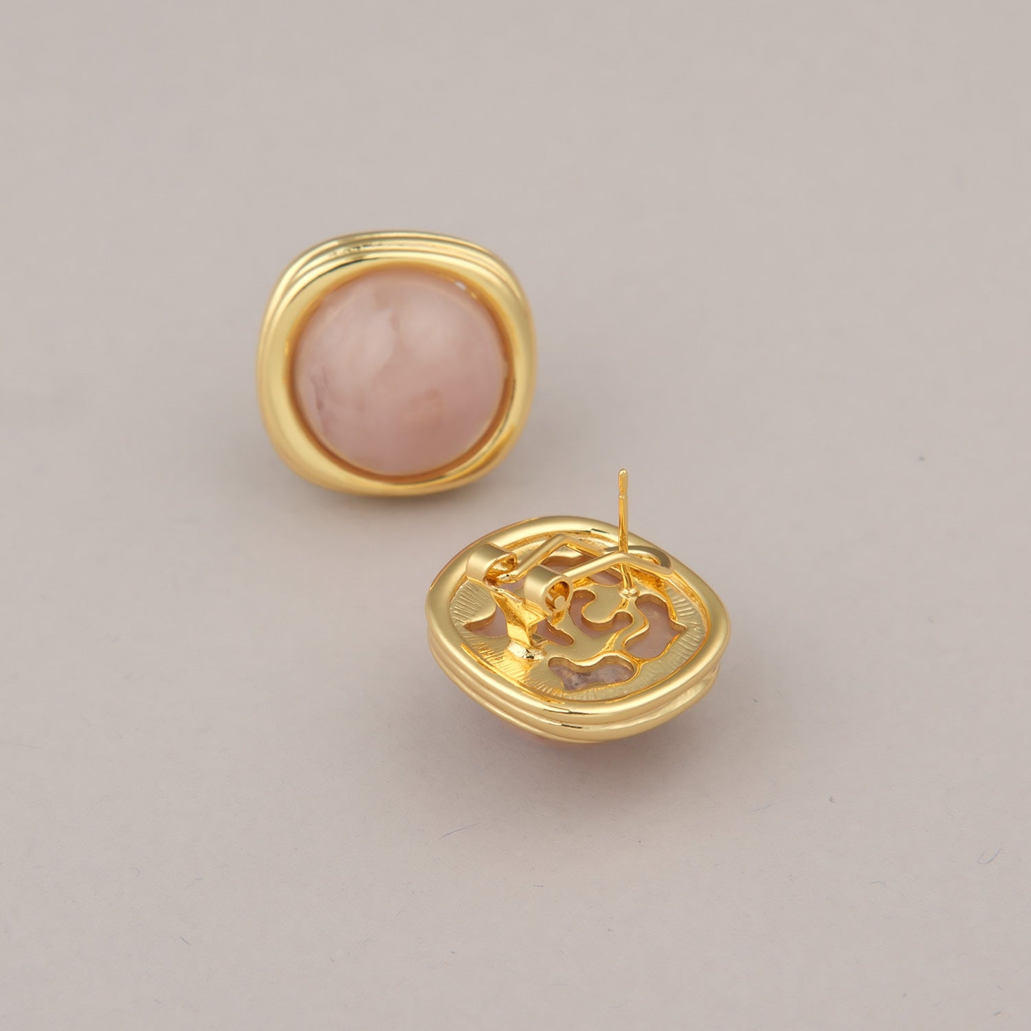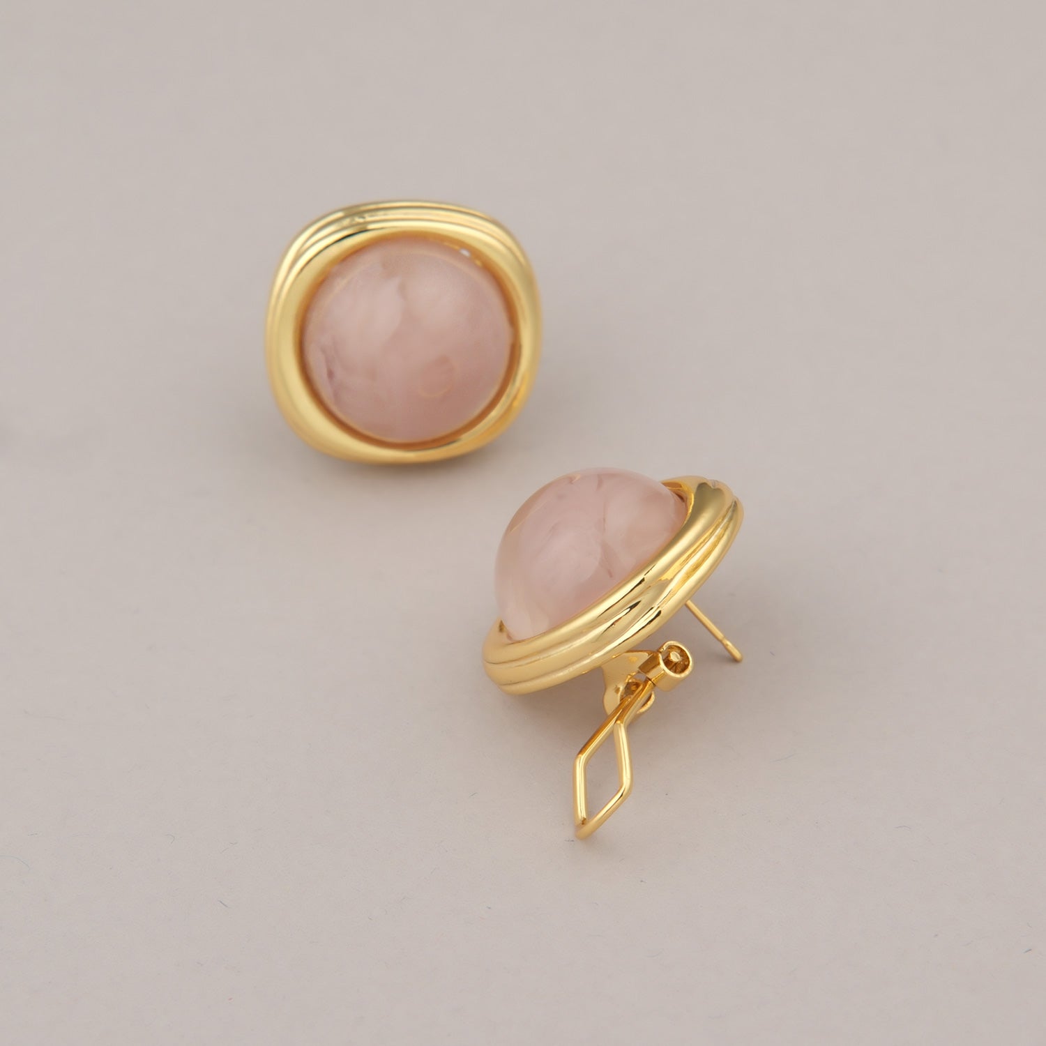 Orecchini a lobo in ottone placcato oro ed inserto con resina cabochon di colore rosa. Un gioiello colorato e versatile per divertirti a creare abbinamenti perfetti con i tuoi outfit.