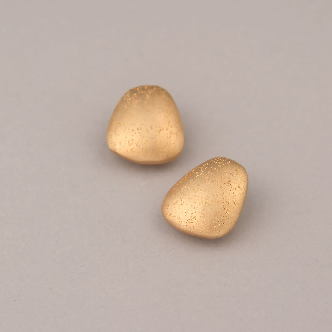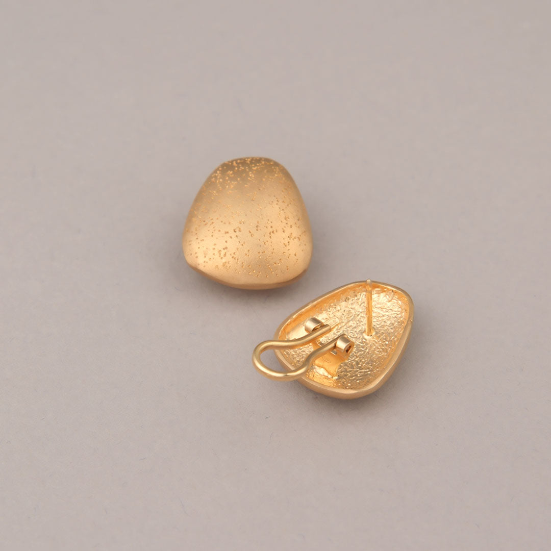 Orecchini a lobo in argento 925 placcato oro con finitura satinata e puntinata, quest’ultima permette di creare un effetto scintillante direttamente sul metallo. Un gioiello interamente realizzato a mano, dalla progettazione alla cura finale per ogni dettaglio.