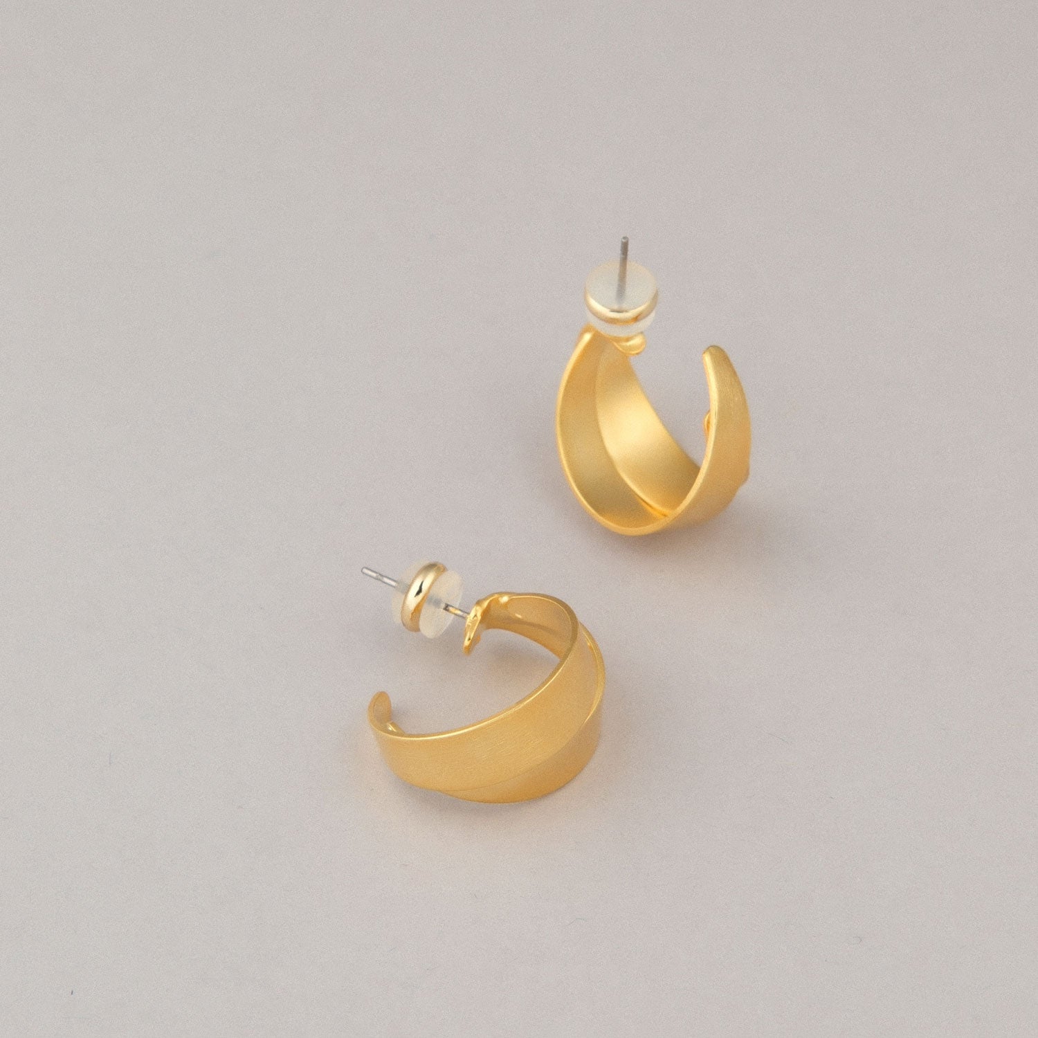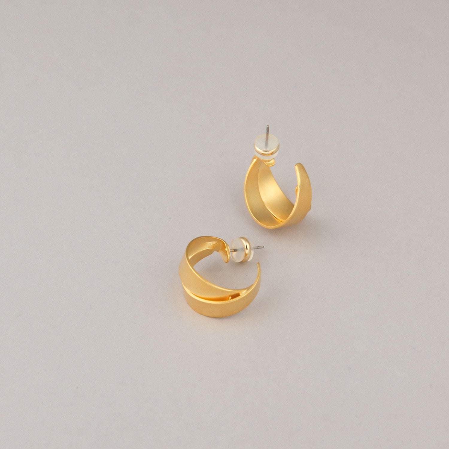 Orecchini a cerchio in ottone placcato oro, nati dalla lavorazione di una lastra di metallo che, piega dopo piega, prende forme sempre diverse. Un accessorio pensato per accompagnare ogni donna, ogni giorno, in ogni versione di sé.