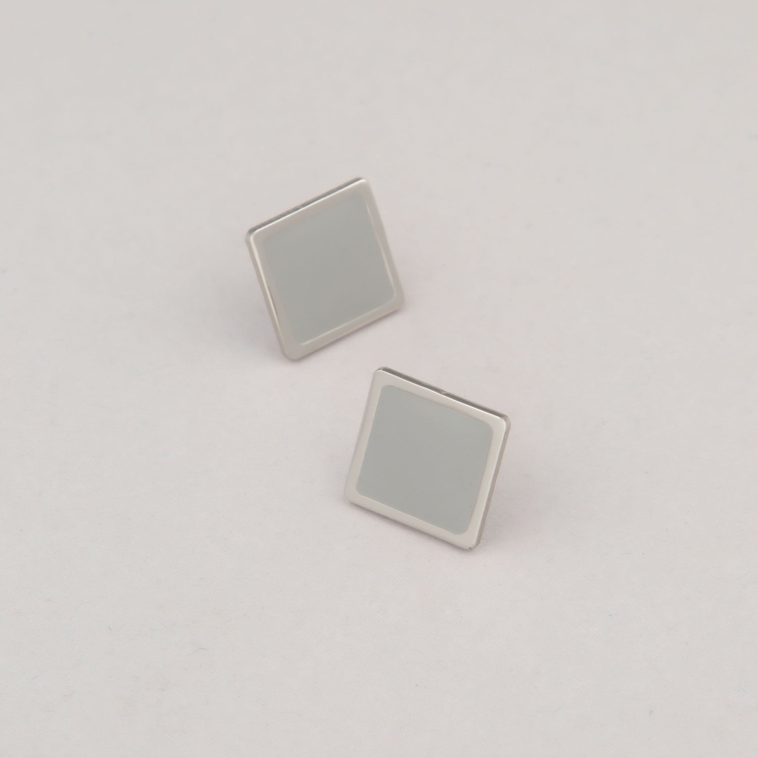 Eleganti orecchini quadrati realizzati a mano in lastra in bronzo argentato con piccoli elementi decorativi in smalto a freddo verniciato di colore grigio. La fusione perfetta tra eleganza contemporanea e artigianato tradizionale. Lasciati affascinare dal design elegante ed i dettagli raffinati di un gioiello che sarà il complemento perfetto per ogni look. Si abbinerà perfettamente al tuo abito colorato, o sarà il tocco di stile che serve a un outfit più semplice. Il regalo perfetto per te stessa o per sorprendere una persona speciale.