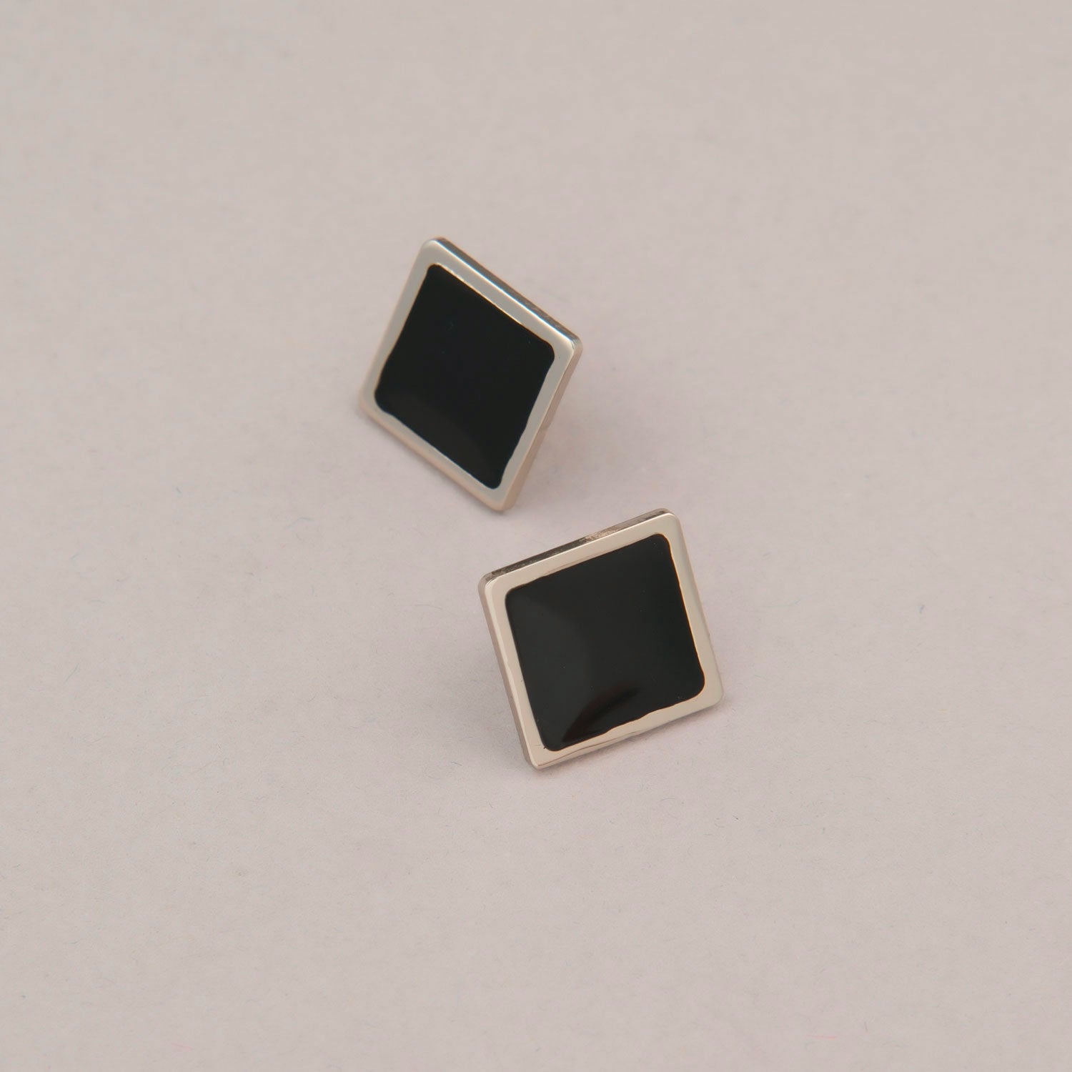 Eleganti orecchini quadrati realizzati a mano in lastra in bronzo argentato con piccoli elementi decorativi in smalto a freddo verniciato di colore nero. La fusione perfetta tra eleganza contemporanea e artigianato tradizionale. Lasciati affascinare dal design elegante ed i dettagli raffinati di un gioiello che sarà il complemento perfetto per ogni look. Si abbinerà perfettamente al tuo abito colorato, o sarà il tocco di stile che serve a un outfit più semplice. Il regalo perfetto per te stessa o per sorprendere una persona speciale.