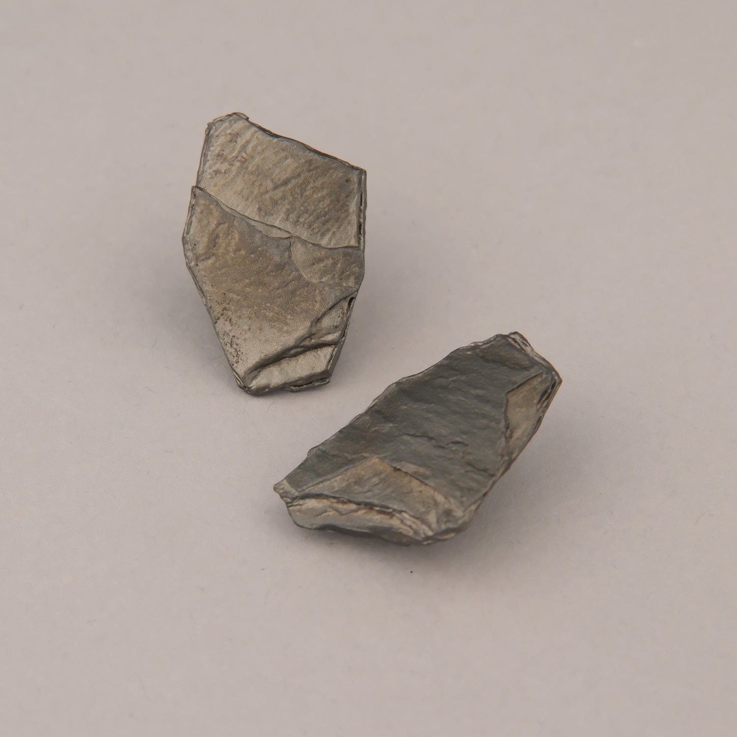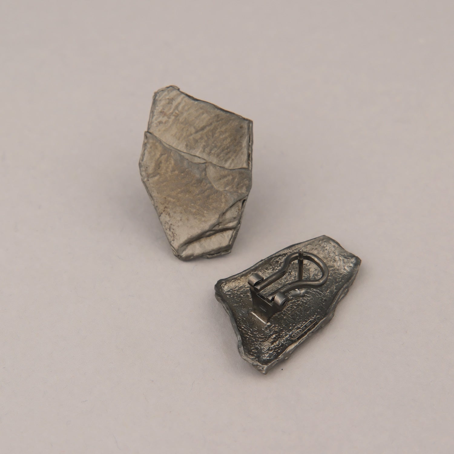 Orecchini a lobo in argento 925 brunito con finitura satinata. Un gioiello interamente realizzato a mano, dalla progettazione alla cura finale per ogni dettaglio.
