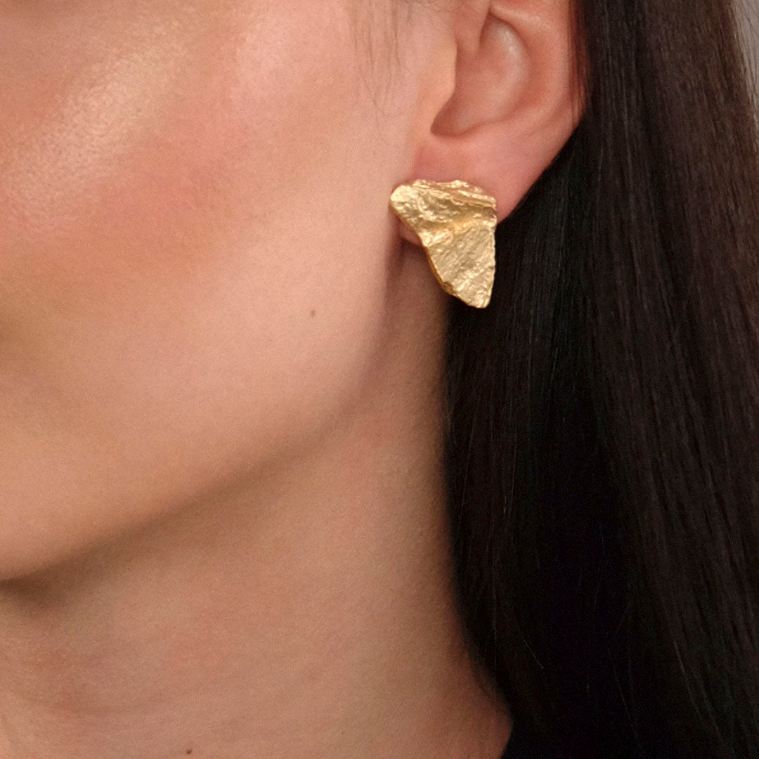 Orecchini a lobo in argento 925 placcato oro con finitura satinata. Un gioiello interamente realizzato a mano, dalla progettazione alla cura finale per ogni dettaglio.